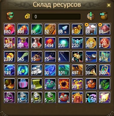 Банк расширен на 4 строк, склад ресурсов — 6 строк, инвентарь — 5 строк.