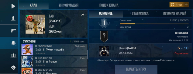 Аккаунт 20 уровня (калибровка везде) и аккаунт состоит в клане GGQwer