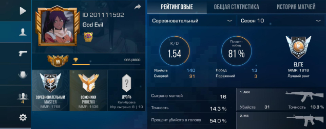 Аккаунт в standoff2 с неплохими званиями и хорошим айди
