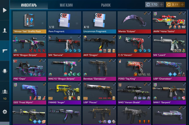 Имеется очень дороигие наклейки на оружиях