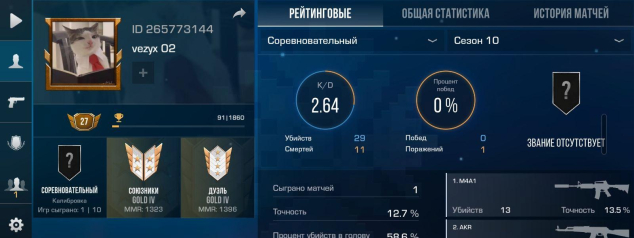 Продам аккаунт, 27 лвл, в союзниках голд 4 в дуэлях голд 4 в соревах 1 матч отыгран(калибровка)айди:265773144