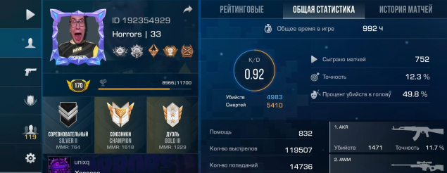 Приветствую, продаю аккаунт где есть 1 нож и перчатки, 170 уровень, достаточно медалей, есть свой клан, на аккаунте почти 1к чёсов (992ч)