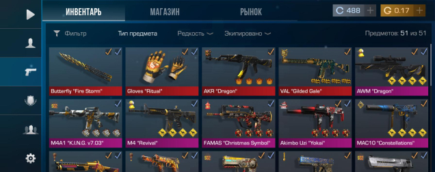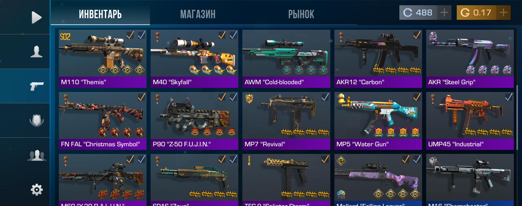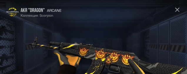 • Есть дорогие скины ( есть калаш AkR Dragon с 4 одинаковыми наклами (каждая накл-1500г))