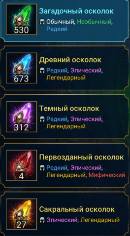 Галатир,Тоширо,Эмбрис,Мезомель,Сифи,Маричка,Конь,Атаман,Нарсес,Харима,Шреддер,Леонардо,ОСКОЛКИ,52к♦️, мифических героев: 7, легендарных героев: 226, э