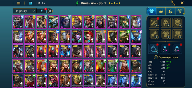 ОТЛИЧНЫЙ СТАРТ. ТОШИРО,РИХО,КРОУКАД,КОРВИС,ХЕФРАК. 86к энергии., мифических героев: 1, уровень аккаунта: 33