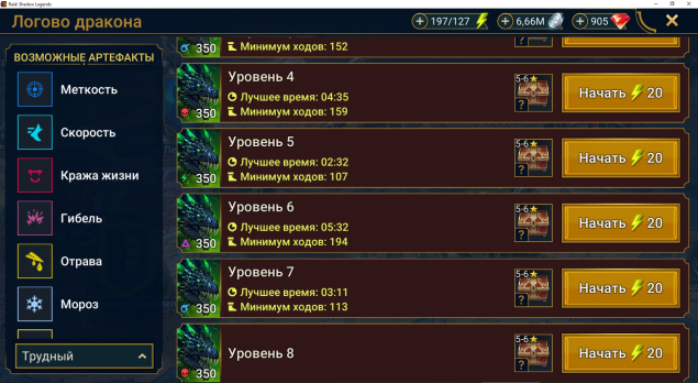Уровни подземелий закрыты: Дракон — хард 7, Лава — обычный 25, Ледяной голем — хард 6.