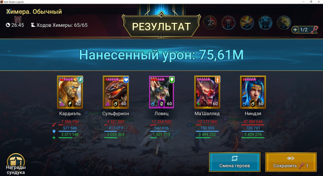 На складе куча запаса корма для дальнейшего повышения звезд героев. Артак топовый качер корма (12-3 невозможный около 13 сек заход).