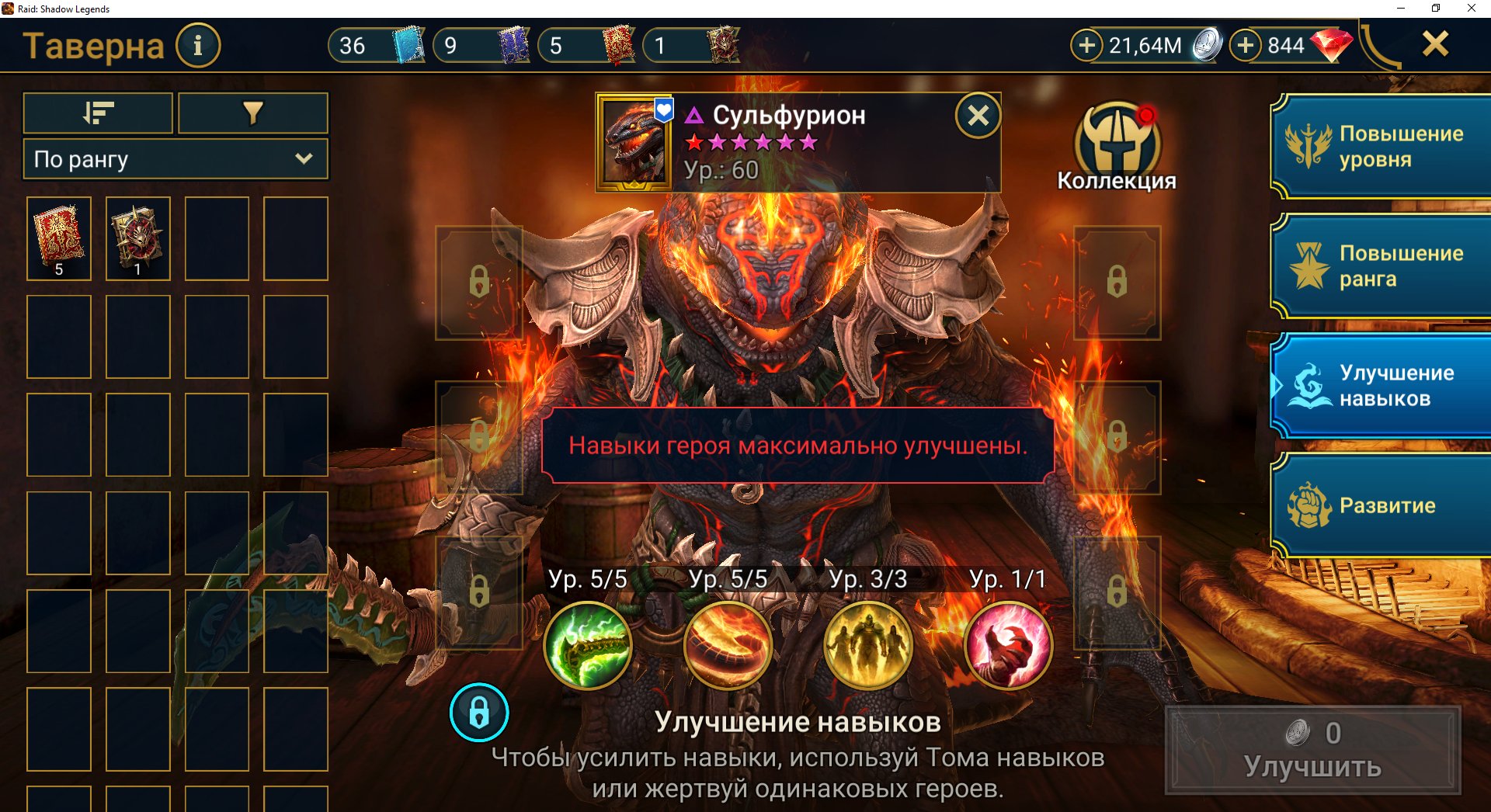 Сульфурион залит весь целиком книгами + Таланты + Дар (1 душа).