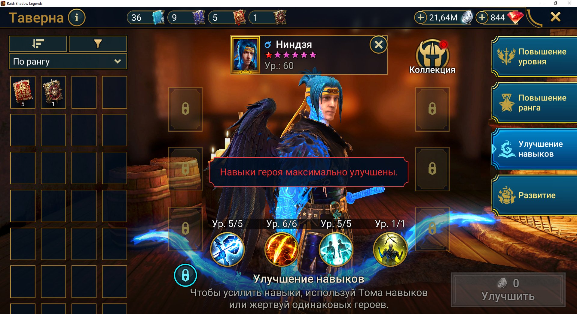 Книги: 1 мифическая, 6 легендарных, 9 эпических, 36 редких.