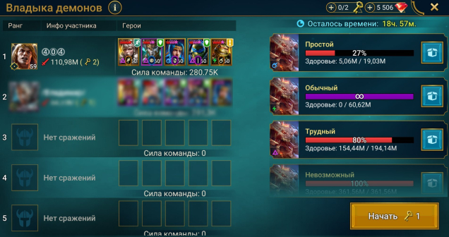Подробное описание: КБ ультраадский за 2 ключа, Гидра, Химера, все подземки: хард дракон 8 этаж, хард паучиха 6 этаж, хард лава 3 этаж, обычный ледяной голем 20 этаж (дальше не проходил, чисто по миссии для Арбы подготовил). ВФ с перспективой — все герои есть.