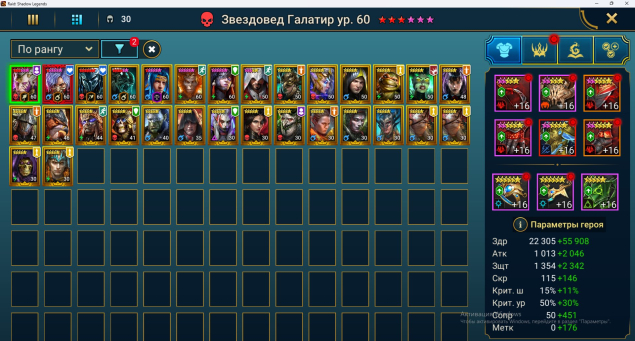 Топ старт == Хищник 6* + Галатир 3*+ Тоширо 1*+ Киоку🔥🔥 Почта сменная, мифических героев: 2, легендарных героев: 28, эпических героев: 93, уровень а
