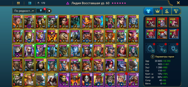 🔥Ого-го!⚡️Лидия | Шу | Хозяин гробниц | Валька | Макаб | сила 5 млн, легендарных героев: 48, уровень аккаунта: 95