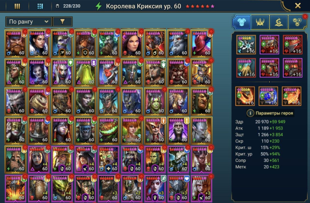 Подробное описание: Продам аккаунт 100 ур., 17кк+ сила(кто любит неактуальных персонажей одевать — может легко поднять на 5кк+-). Сменная почта, без привязок. Фул зал, башня, подземки, кб, гидры, химеры и т.д. Все миссии закрыты, герои получены, собирается мифик с химеры.