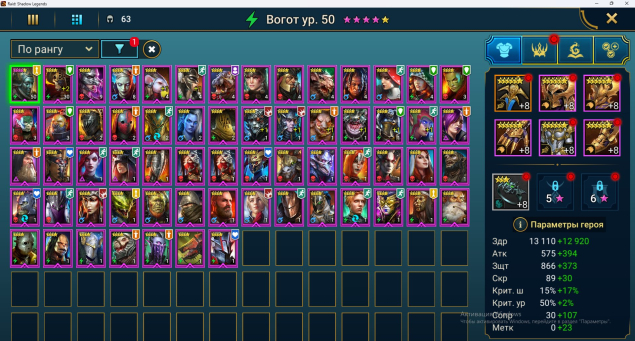 Наиз + Браго + Нарма, полная сменка!, мифических героев: 1, легендарных героев: 21, эпических героев: 63, уровень аккаунта: 46