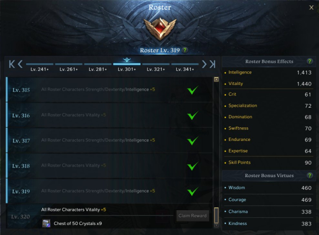 7.2k hours ig, 319 roster, 5.5kk gold, 1.8kkk silver, 1200 pheons