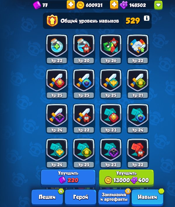 Краткое описание: ⚔️Крит 3255💃15 Танц🐯15 Мастер🕵️♂️15 Инквиз🗿15 Статуя☯15 Монах🗡15 Мечи🧌15 Утильщик🔱НекрПодробное описание: ВСЁ ПОДРОБНОСТИ НА СКРИНШОТАХ.