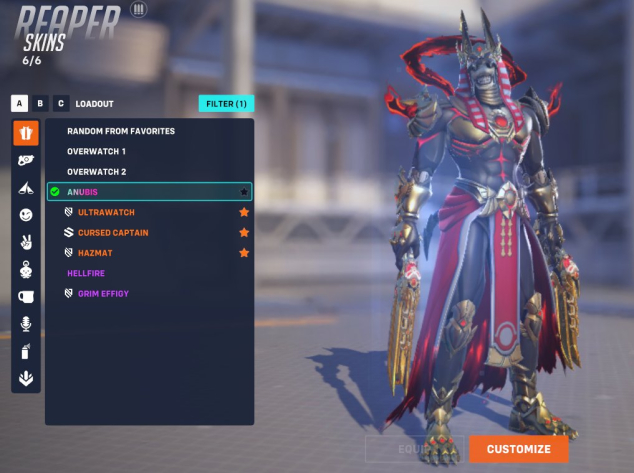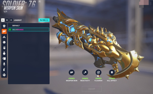 Hanzo ONYRO Mythic, Reaper Anubis Mythic, Deliverance Soldier 76 weapon skin Mythic, Moria Ancient Caller Mythic, Pixiu Zenyatta Mythic ]