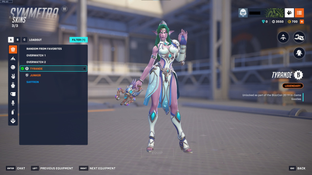 Unique Skins: Illidan Genji, Tyrande Symmetra, Blizzcon 2017 Winston, Blizzcon 2016 Bastion, Demon Hunter Sombra