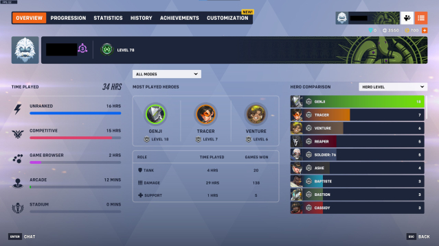 ILLIDAN GENJI 🐉 TYRANDE SYMMETRA 🐉 BLIZZCON 2017 WINSTON 🐉 BLIZZCON 2016 BASTION 🐉 CYBERDEMON GENJI, 78 уровень