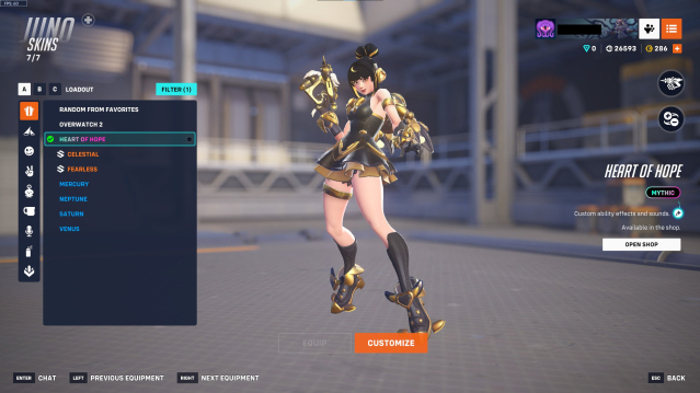 3 Mythic Skins: Onryo Hanzo, Heart of Hope Juno, Vengeance Mercy
