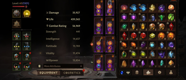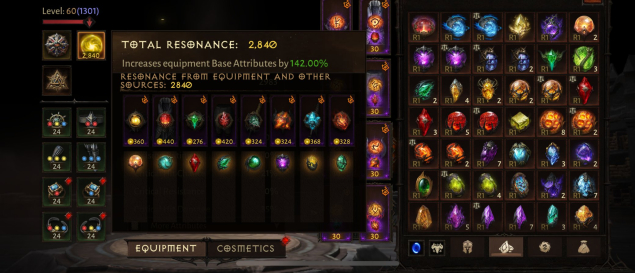 Подробное описание: Чародей 1301, 56950+ бр, 2840 резонанс, есть сущности на Варвара и Друида