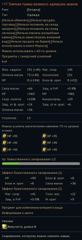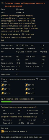 Подробное описание: великий адмирал 5 шмоток + 13 см + хп / + сет флотилии в см+хп +11-13, пуха акана — адмирала флотилии15 гс 8к земли -подпай отречения на скорость атаки, бижа все 60топ, пару премиум титулов на складе, пару сетов флотили частично +10 частично с камнями частично в коробках, морос 48