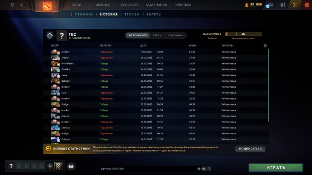 🟪 Рейтинг Открыт: рекрут — 1500 ММР МейнПул. Доступна рекалибровка