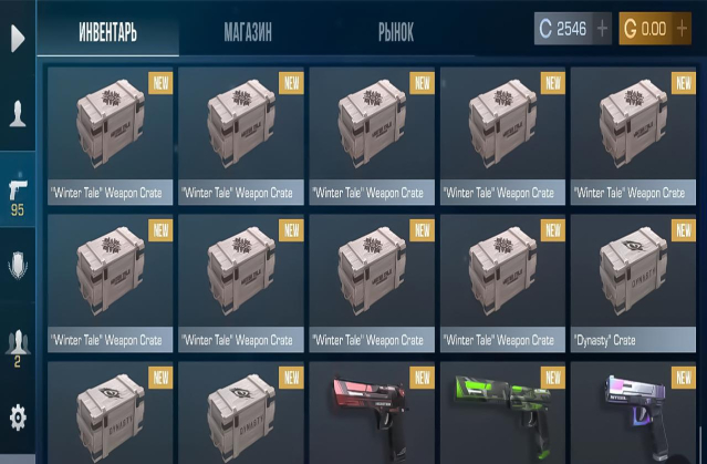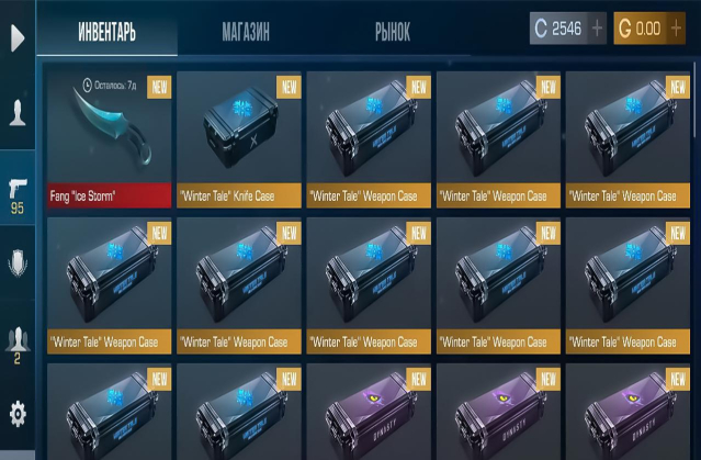 “Winter Tale” Knife Case (1), “Winter Tale” Weapon Case (10), “Dynasty” Case(3), “Fable” Case (2), Fragment Box (4), “Chameleon” Box (1), “Winter Tale” Gift Box (1).