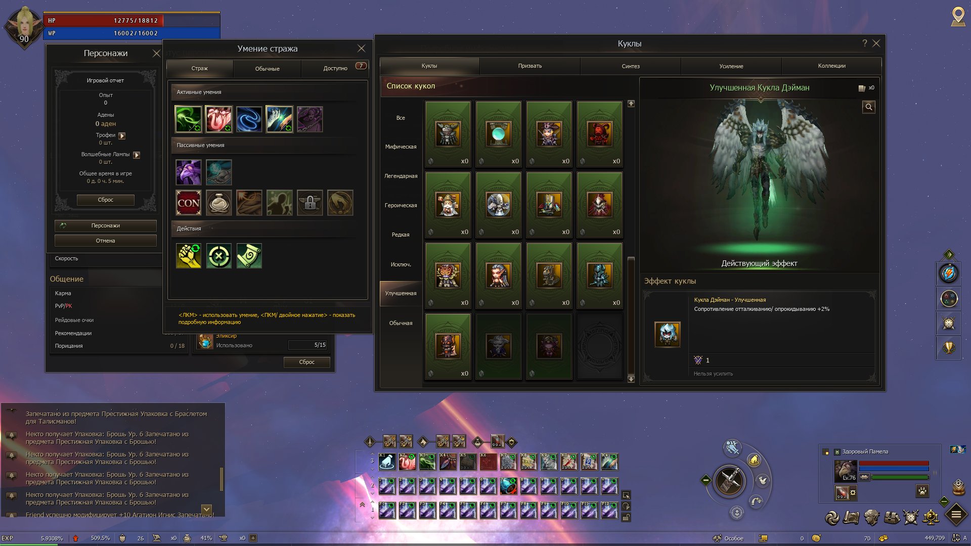 — Талисманы: Талисман Баюма +2, Талисман Властителя +6, Ева +5, Скорость +7, Аден +4, Бенир 10,