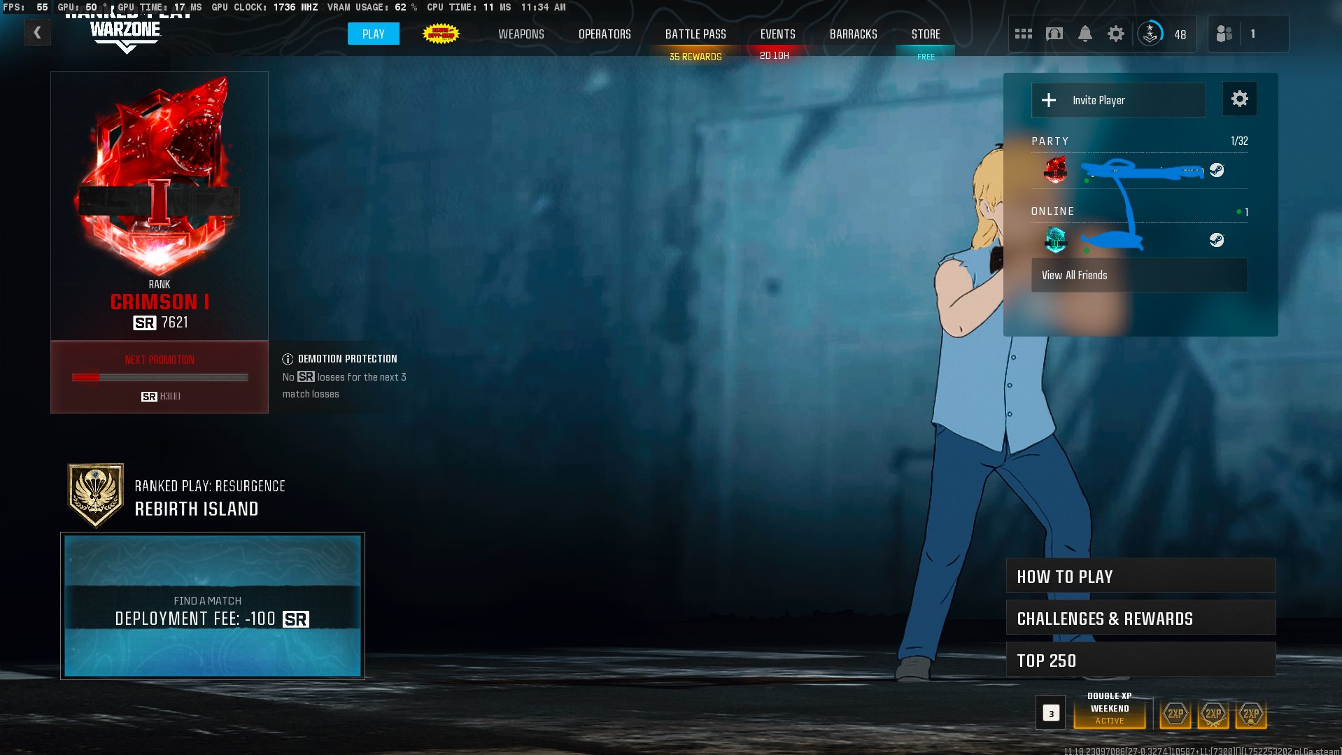Платформа: (PC \ Xbox) Call of Duty WarzoneКраткое описание: BO6 Crimson Rank SR 7500+ | Season 4 | Level 27 | 18 Operators | Ranked Ready | Full Access |