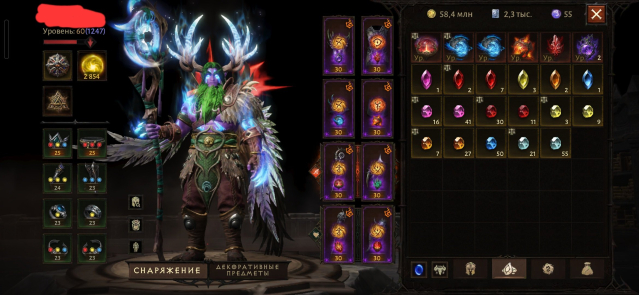Краткое описание: 1248vl 2854 res 56000 br, сущности на друида и сорку, есть 1 легендарный костюм