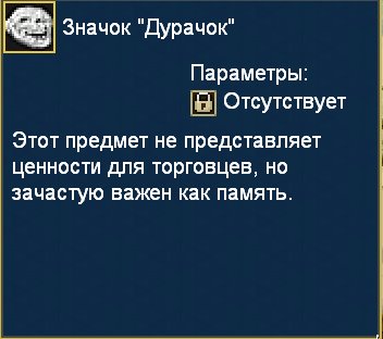 Подробное описание: Редкий коллекционный предмет «Значок Дурачок», можно за голд