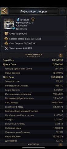 Замок Р6, открыты все типы войск, основной тип, которым играю — кони. 23500% атаки, 15700% здоровья, 54 прокола, 515 урона при нападении. Открыты все герои и драконы. Так же есть все навыки на драконах под коней, наука прокачена в академии почти вся. Замок хороший. Так же прикрепил отчёт с %, моя статистика слева. Замок на глобальной версии, никаких китайских аккаунтов. Можно играть как на Android, так и на IOS. Торг присутствует