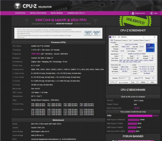 1) Я ОСИЛИЛ разгон до 💎6.1ГГЦ💎 P-ЯДРА и 💎5ГГЦ💎 Е-ЯДРА на 14900K С 🔥НИЗКИМ🔥 напряжением + 🔥МИРОВОЙ🔥 рекорд в производительности CPU-Z на клиентском пк
