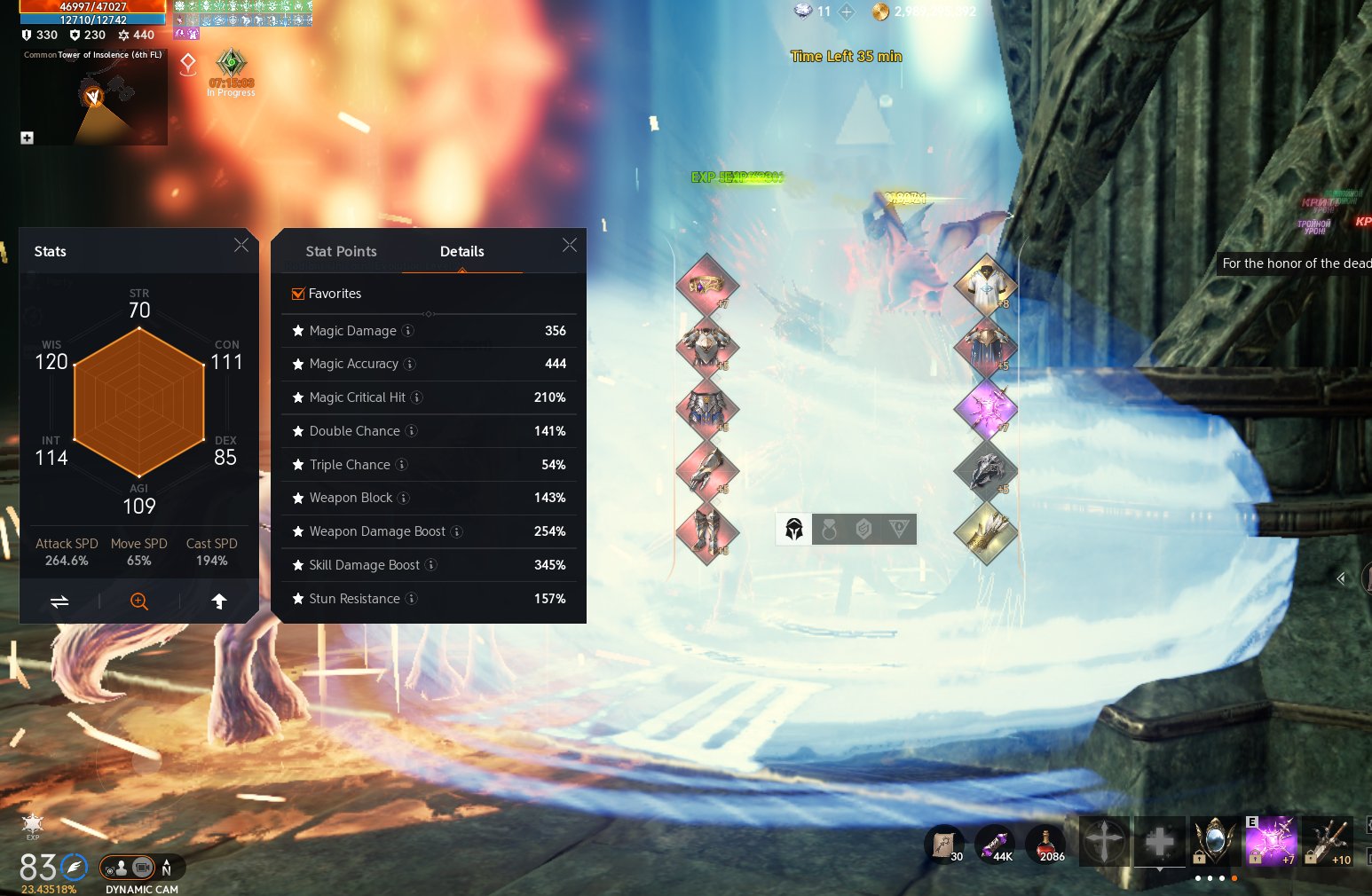 ℹ️ Другие Характеристики: Крит. Шанс. 200%, Шанс Двойного Урона 143%, Шанс Тройного Урона 54%, Блокировка Оружия 143%, Увеличение Урона от Оружия 258%, Увеличение Урона от Умений 359%, Сопротивление Оглушению 156%, Шанс оглушения 80%.