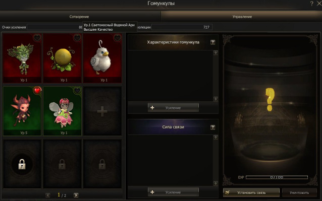 3 красных гомункула ( Тыква, Ари, Нимфа). Зеленый дьяволенок 5 ур — 3 связи. 900 очков усилления и 700 эволюции.