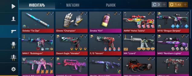 На аккаунте есть нож и перчатки также многое другое )