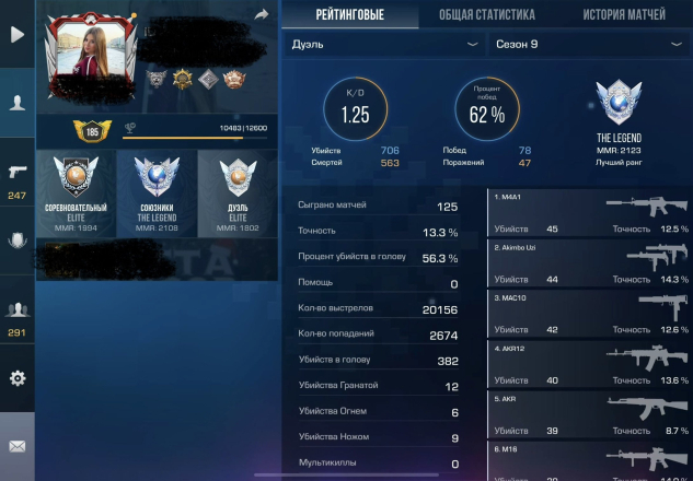 По аккаунту: в 9 сезоне в союзниках легенда в дуэлях легенда и в мм элита, в 10 сезоне 2500 ммр было в союзниках элита в мм и элита в дуэлях.аккаунт с примерной стоимостью 80к голды.Очень много скинов и хороших ножей для разнообразия а также 8625голды на балансе, на последнем скрине есть все что добавилось в инвентарь.Аккаунт стримерский часто узнают в катках.Привязка Гмаил, дам время на перепривязку вашых данных.Скины в стендофе растут а цена не меняется)
