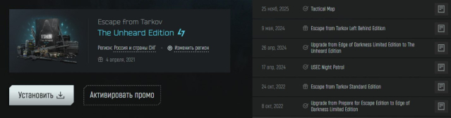Краткое описание: #NT1 EFT Rare account| Region RU/CIS| EOD, Unheard Edition