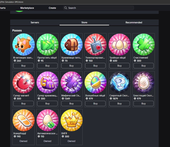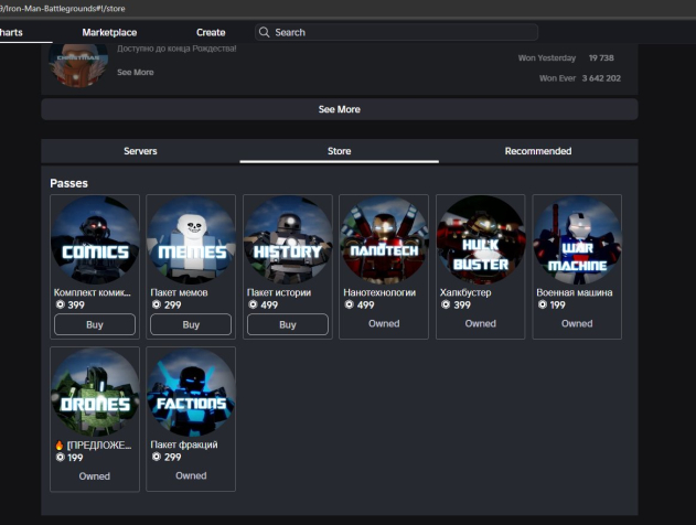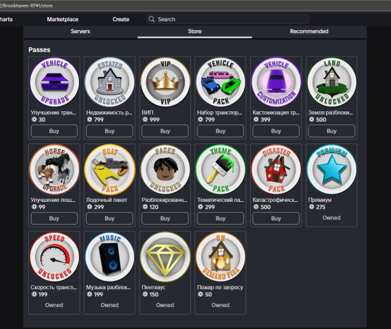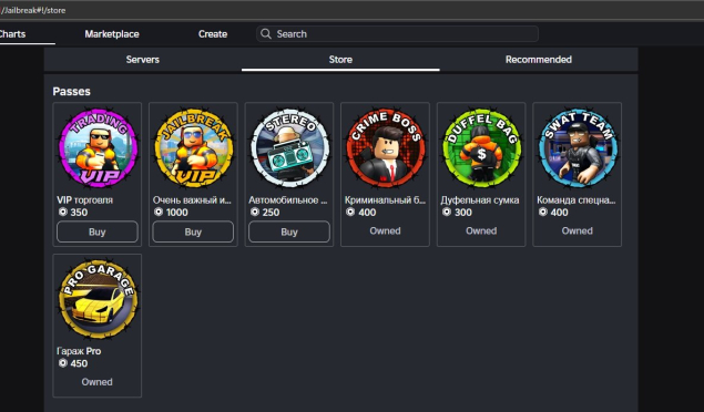 Куплены гейм пассы в режимах: Армия Роблокса РП, Fallen Survival, Iron Man Reimagined, a dusty trip, Guerra de Torres, Ragdoll Engine, cart ride around nothing, Iron Man Battlegrounds, War Tycoon, Pet Simulator X!, Brookhaven RP, Spray Paint, Scary Elevator 2, Easy Obby, Pilot Training Flight Simulator, Legends Of Speed, Da Hood, Survive and Kill the Killers in Area 51, Jailbreak, Car Dealership Tycoon, KAT, Natural Disaster Survival .
