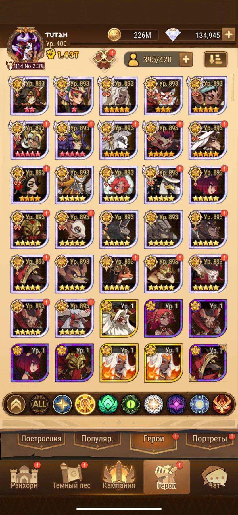 🏆Аккаунт играет в Гильдии на топ — 100 рейтинга Бездны и ежедневно качается как положено.
