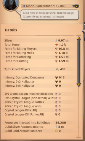 ⚔️ PvP Fame (Players Killed): 9.61M | 405 kills