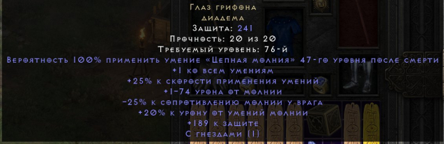 с сокетом, вставлен самоцвет грань радуги белого цвета +5% к скорости произнесения заклинаний -5% к вражескому сопротивлению молнии