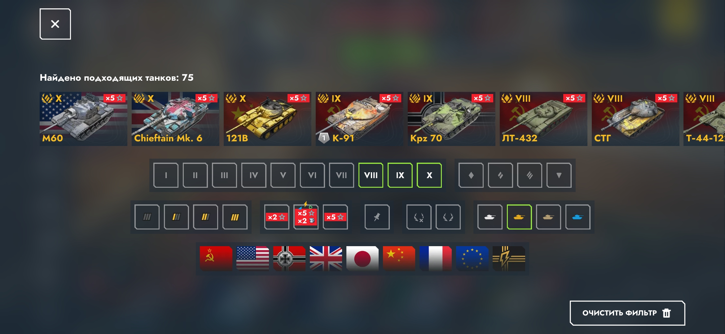 Танки: 26 коллекционных (10 уровня)🥇(включая МС-11, ХМ-57); 7 коллекционных (9 уровня);