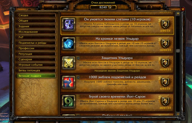 8240 ОЧКОВ ДОСТИЖЕНИЙ (Много рейдовых бк — ката), отличные логи тех патчей на персонажах.