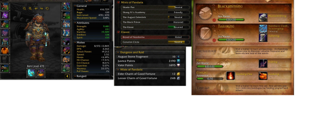 Краткое описание: 90 прот воин, пандарен. 470 илвл. кузнечка / портняжка 600/600.