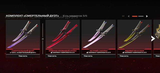 3 реликвии: двойные катаны со всеми расцветками за осколки + ящик