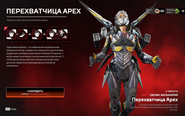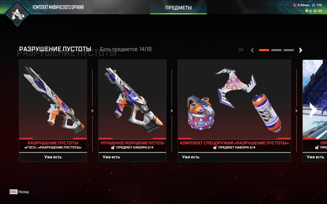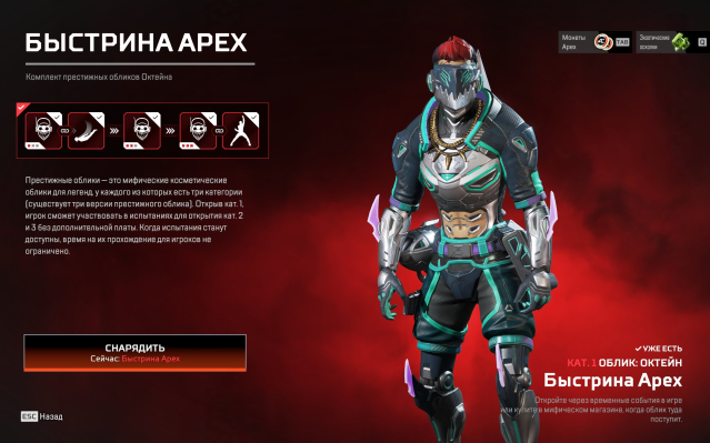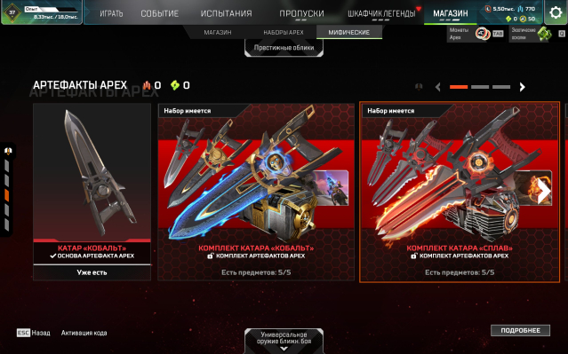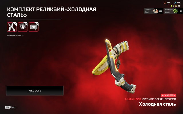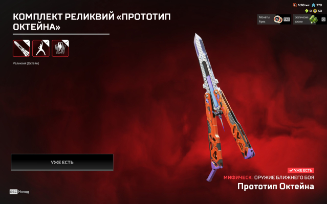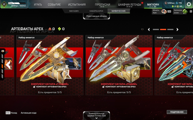 Две бабочки Октана, кунай, веер, реликвия Пепла, Бангалор, Патфайндер, Кермабит (неоновый), все вариации Катара, Бастер R5, реликвия скина R-301 с красным и желтым рекалорами, престижные скины для Рейф, Бангалор, Патфайндер, Октейна и Валькирии.