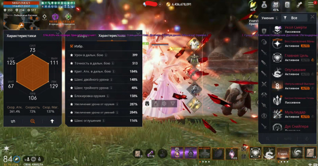 ℹ️ Другие Характеристики: Крит Атака 184%, Шанс Двойного Урона 148%, Шанс Тройного Урона 48%, Блокировка Оружия 158%, Увеличение Урона от Оружия 287%, Увеличение Урона от Умений 284%, Сопротивление Оглушению 147%, Шанс Оглушения 116%.