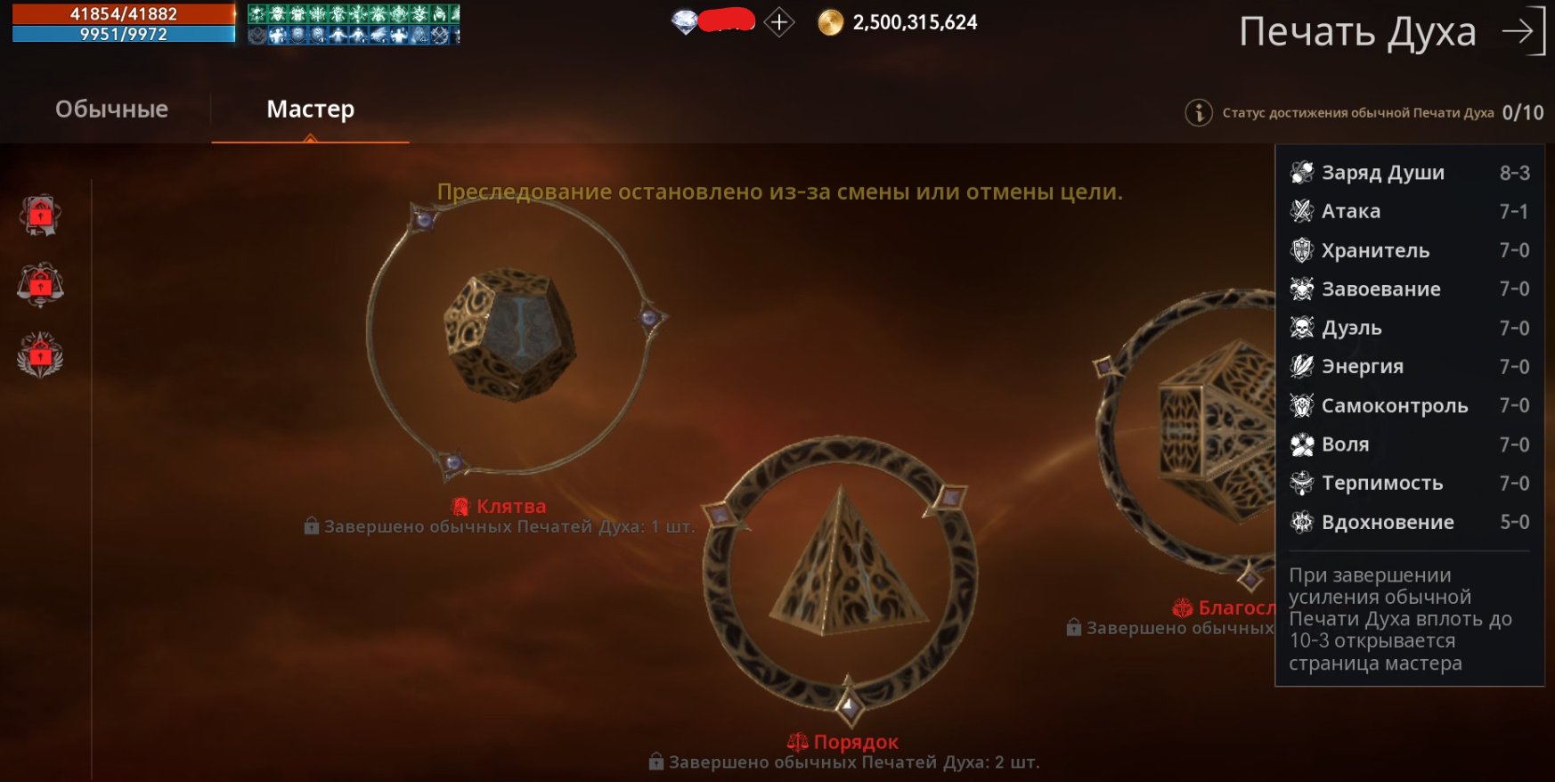 Заряд Души 8-3, Атака 7-1, Хранитель 7-0, Завоевание 7-0, Дуэль 7-0, Энергия 7-0, Самоконтроль 7-0, Воля 7-0, Терпимость 7-0, Вдохновение 5-0.